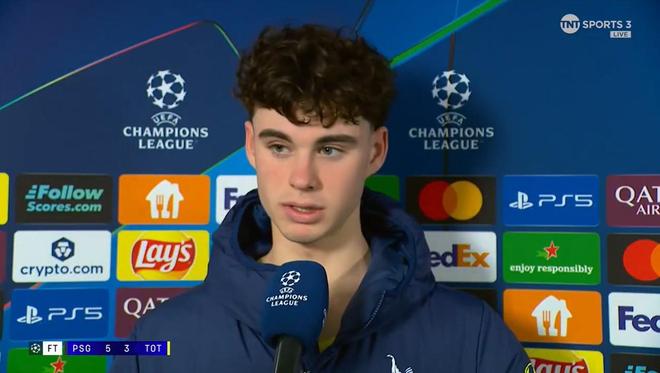 热刺在欧冠客场3-5不敌巴黎圣日耳曼。赛后,热刺中场阿奇-格雷接受了TNT体育的采访。